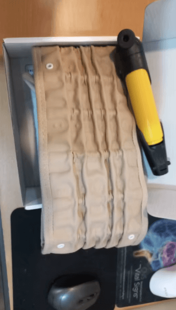 يحتوي على غرف هوائية تُنفخ خلال ثوانٍ قليلة، ترفع الجزء العلوي من الجسم بلطف، ما يخفف الضغط عن العمود الفقري ويسمح له بالشفاء تدريجيًا.