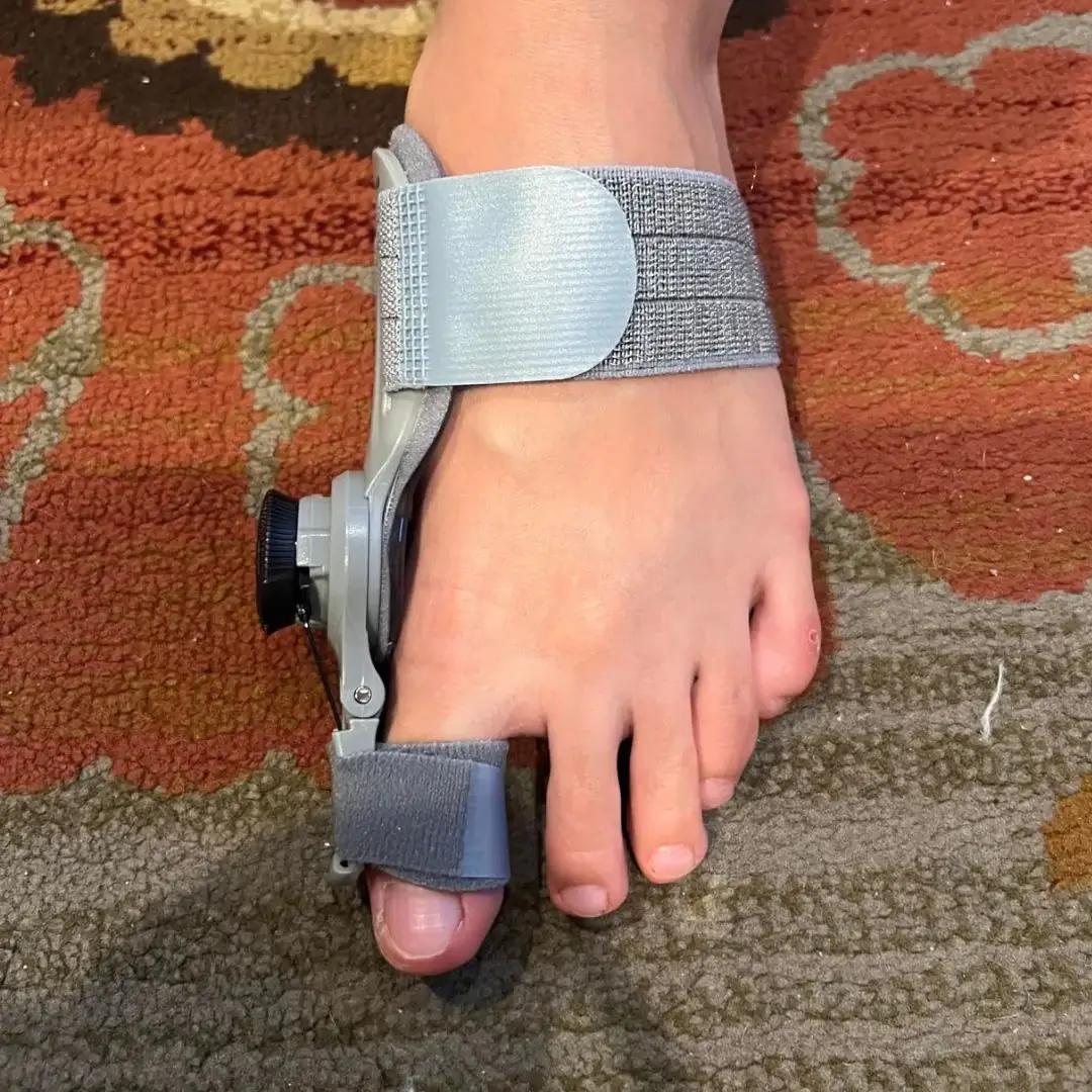 لقد صممنا جهاز تقويم الورم ليكون قويًا بما يكفي لإعادة تنظيم مفصل الإصبع الكبير، مما يقلل من الالتهاب ويخفف الألم.
